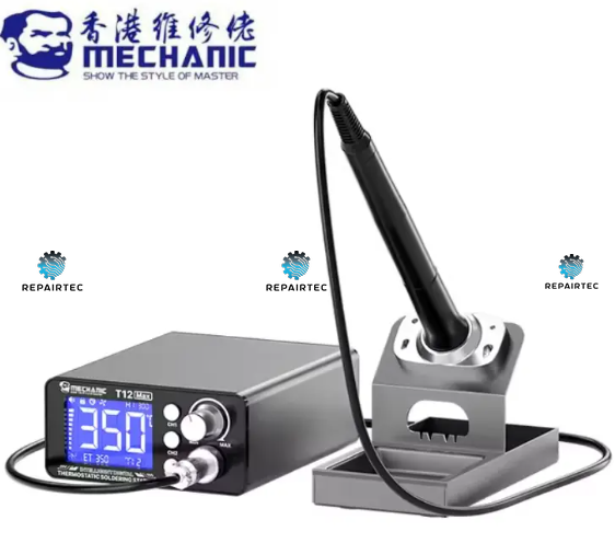 A MECHANIC T12 Max é uma estação de soldadura de precisão, concebida para trabalhos eletrónicos de alta qualidade. Equipada com ecrã digital LED inteligente e sistema de termóstato avançado, oferece controlo de temperatura extremamente preciso, ideal para componentes sensíveis.